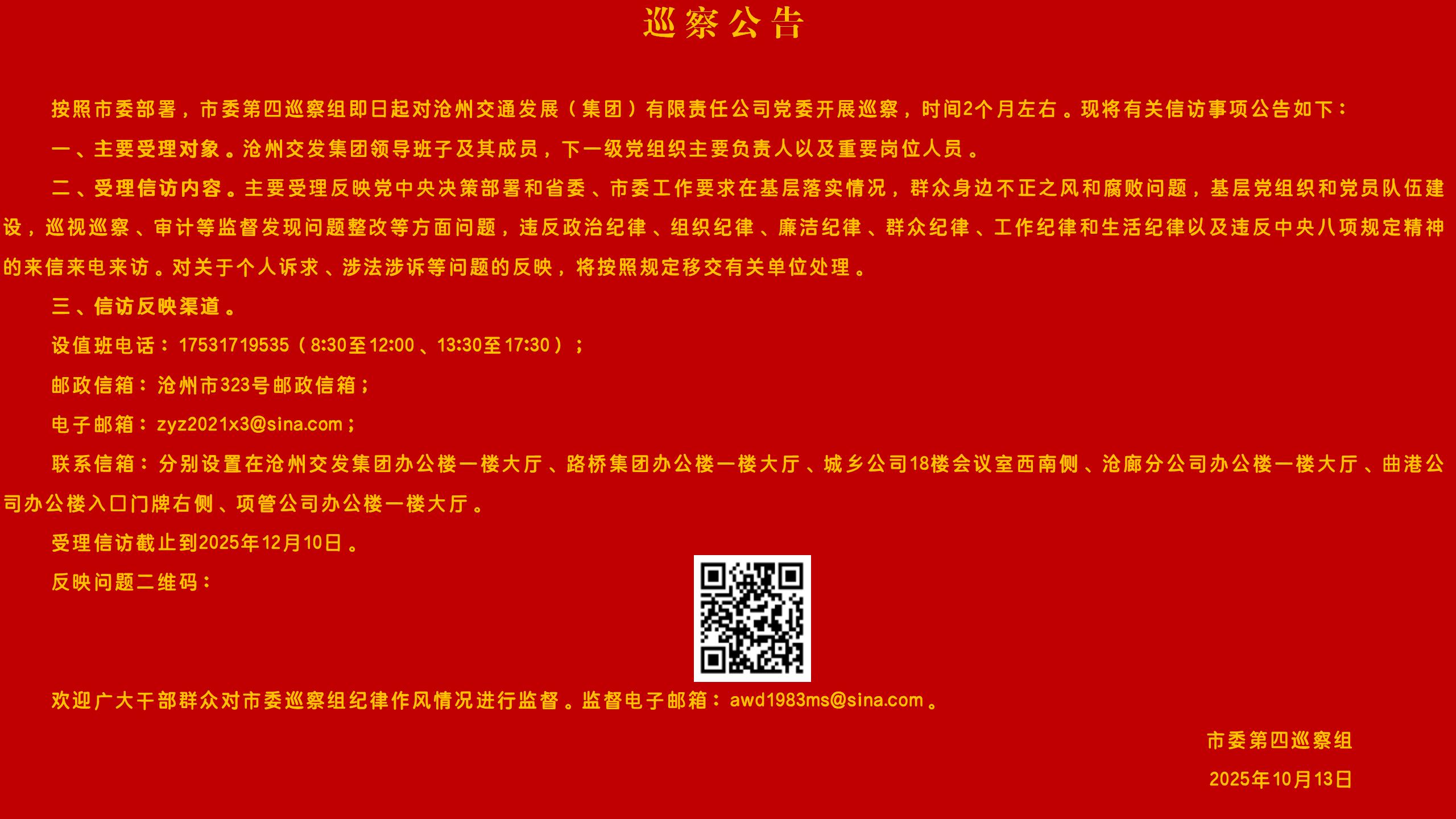 市委第四巡察组巡察 沧州交通发展(集团)有限责任公司党委 工作动员会召开