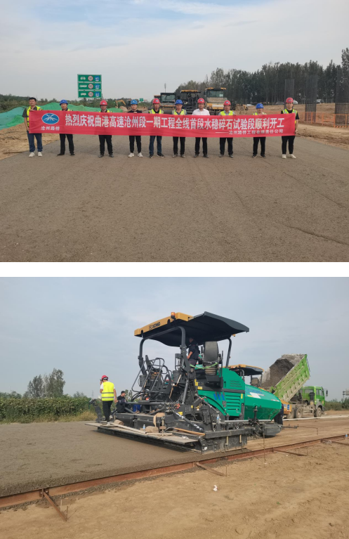 金秋传捷报 水稳喜开工————沧州路桥率先启动曲港高速公路L8标段水泥稳定碎石试验段施工